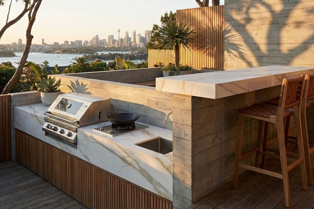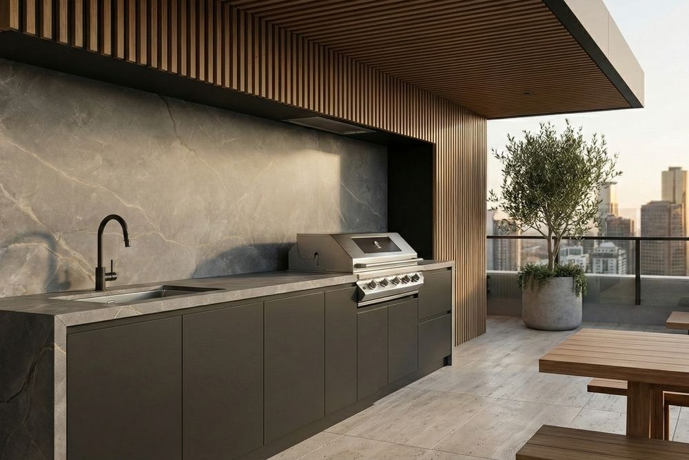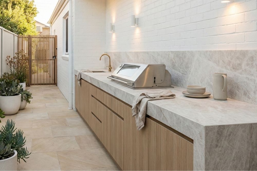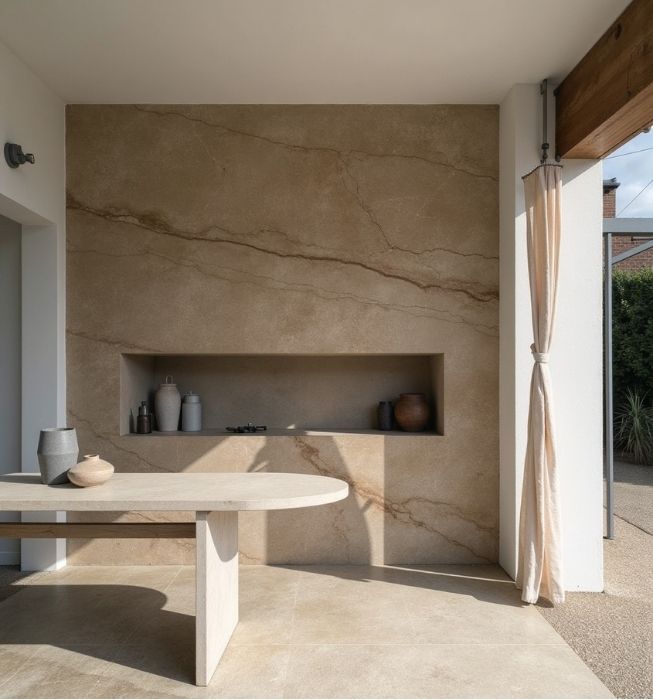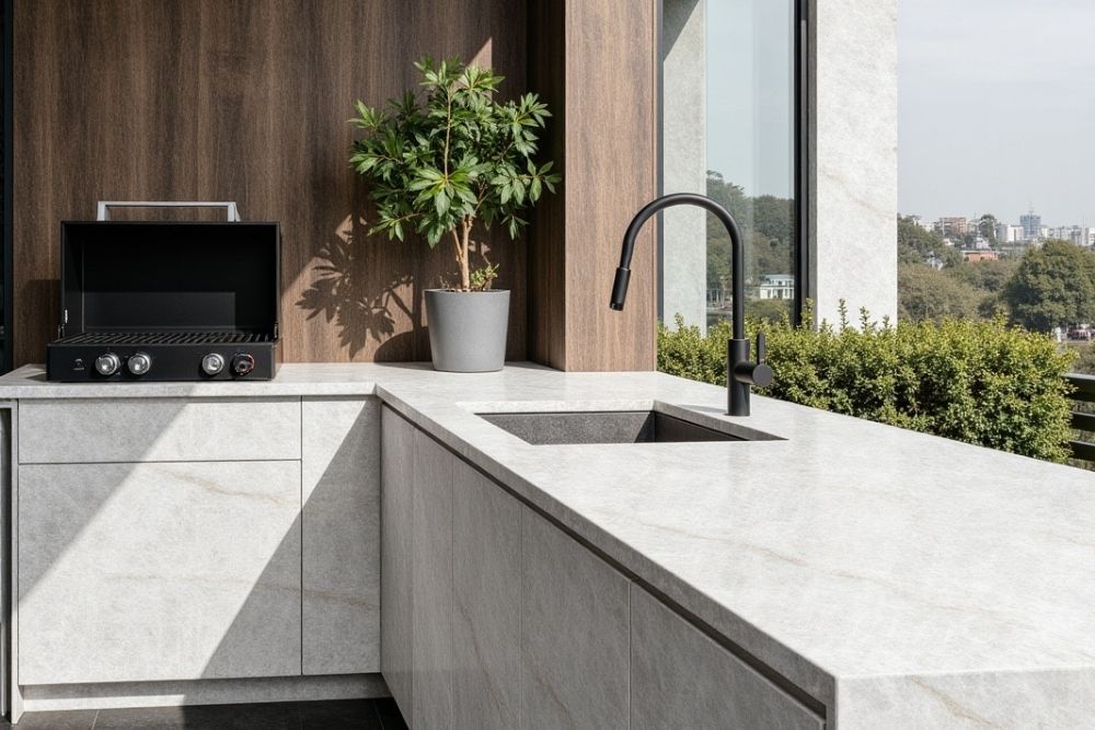Techlam’s UV resistance and zero-porosity surface make it ideal for outdoor benchtops, facades, BBQ areas, and more. It won’t fade, warp, or deteriorate under sun, rain, or temperature shifts, making it the go-to surface for Australian exteriors.